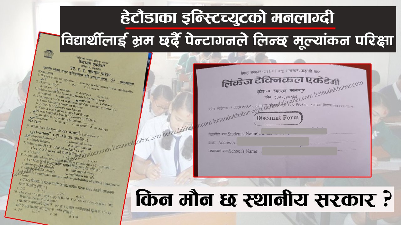 ब्रिज कोर्सको नाममा इन्स्टिच्युटहरुले चर्को शुल्क लिएर ठगेको पाहिएको छ । हेटौडामा च्याउ उम्रे सरि शैक्षिक् परामर्श केन्द्र भाषा शिक्षा तयारी कक्षा ट्युसन सेन्टर इन्स्टिच्युट लगायतका विभिन्न नाममा यस्ता सस्था हरु संचालन भएको पाहिन्छ तर कसले के बिषय अध्यान गराउने अनुमति लिएको छ ? कसले कति शुल्क लिएको छ ? शुल्क निर्धारण कसले गरेको हो यो बिषयमा हेटौडा उपमहानगर बेखबर नै देखिएको छ ! ब्रिज कोर्स को नाममा भ्रामक प्रचार गरेर असुली गर्ने लाइ कहिले होला कारवाही कसले गर्ने अनुगमन को हो जबाफदेही को हो जिम्मेवार निकाय आम नागरिकको प्रश्न रहेको छ !
