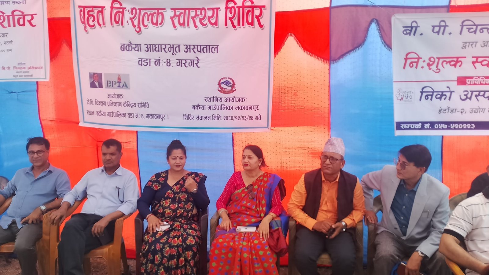 स्वास्थ्य शिविर  उद्घाटन कार्यक्रममा बकैया गाउँपालिका अध्यक्ष धर्मराज लामिछानेको सभाध्यक्षता तथा   संविधान सभा सदस्य एवं नेपाली काङ्ग्रेस केन्द्रिय सहमहामन्त्री  महालक्ष्मी उपाध्याय डीनाको प्रमुख आतिथ्यता रहेको थियो।