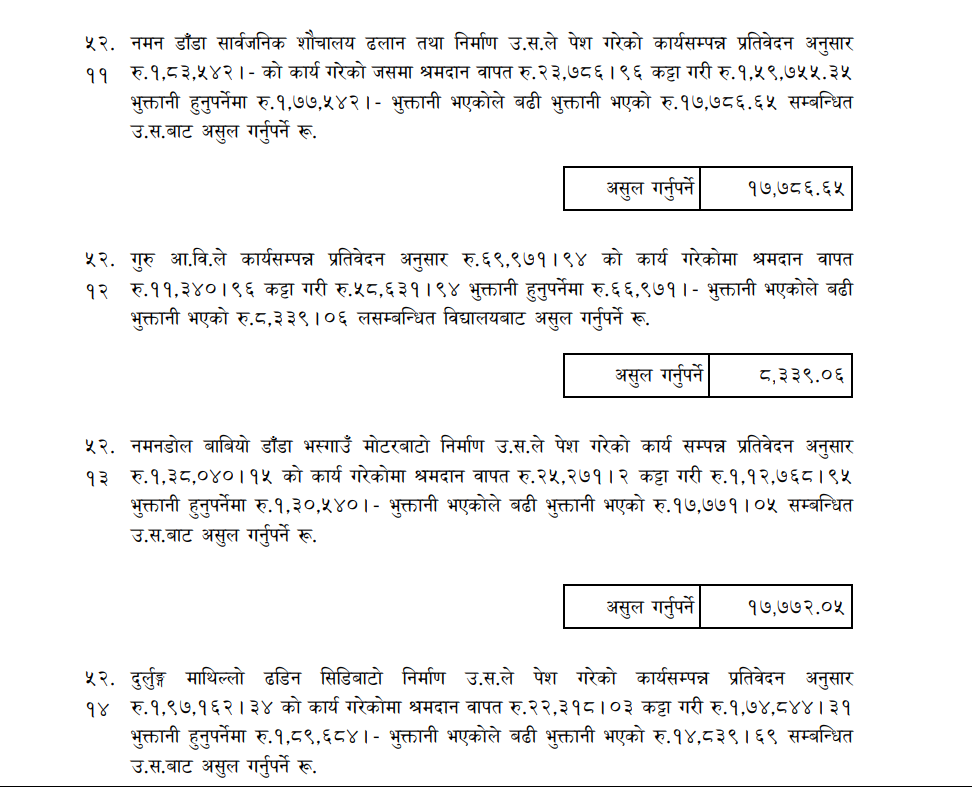 ललितपुर जिल्लाको महाङ्काल गाउँपालिकाको बेरुजु मात्र ११ करोड बाइस लाख बढी रहेको महालेखा प्रतिबेदनले उल्लेख गरेको सार्वजनिक भए पछी स्थानीयतहमा जनताको कर बाट उठेको राजश्वमा जनप्रतिनिधि र कर्मचारीको कति सम्म रजाई हुने रहेछ भन्ने पुस्टि भएको छ ।