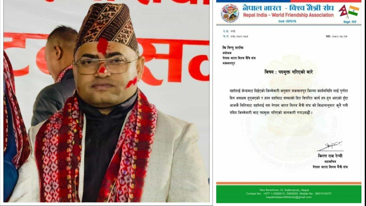 नेपाल भारत बिश्व मैत्री संघ मकवानपुर संयोजक रहेका युवा ब्यबसायी निप्पु शर्राफलाई उक्त संस्थाबाट पदमुक्त गरेको हो ।